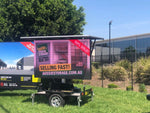 The 3㎡ mobile LED trailer (model:RT3)  is a small outdoor mobile advertising media vehicle .RT3 is equipped with energy-saving battery power supply, normal operation can be guaranteed even when there is no external power supply outdoors; in the area of the LED screen, its size is 2240*1280mm; the size of the vehicle is: 2500×1800×2162mm, which makes it more flexible and convenient to move .
