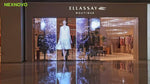 How to make the stores cool, adverting and eye-catching ? Patented technology, 3D-SMT transparent stripe LED display for the big name. The clear led screens are installed behind the regular front windows. It can show vivid videos and advertising as solid LED screens but without blocking of the light and sight to inside of the store.